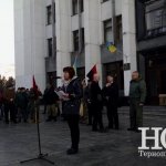 – Сьогодні ми зібралися не випадково, адже саме три роки тому 20 лютого на київському майдані розстріляли Героїв Небесної Сотні, – каже одна із активісток, голова профспілки підприємців Тернопільського центрального ринку Наталя Шоломійчук. – Ми вирішили цю акцію присвятити пам’яті Небесної Сотні і показати всім, що їхні смерті були недаремні, що народ не буде мовчати й не дозволить, щоб об нього витирали ноги. Ми просимо владу прислухатися до наших вимог, скасувати штрафи для підприємців у розмірі 96 тисяч гривень та 320 тисяч гривень за неоформлених працівників та недопущення перевірки з інспекції праці на підприємство, адже це не штрафи, це пряме знищення малого й середнього бізнесу. Крім того, важливим пунктом у нашій резолюції є про недопущення розробки рішення про продаж сільськогосподарських земель, позаяк це єдине, що у нас ще залишилося. А заберуть землю – заберуть наше все…