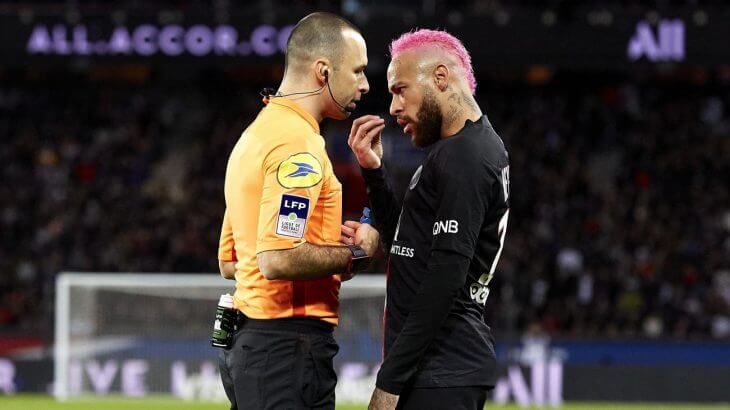 У матчі 22-го туру французької Ліги 1 між «Парі Сен-Жермен» і «Монпельє» стався епізод, який викликав невдоволення не тільки паризьких гравців, а й уболівальників. Футболіст ПСЖ Неймар вирішив продемонструвати свою майстерність і застосував досить видовищний фінт — двома ногами прокинув м’яч собі на хід, втікши відразу від кількох захисників. Однак суддя розцінив його як неповагу до суперника.