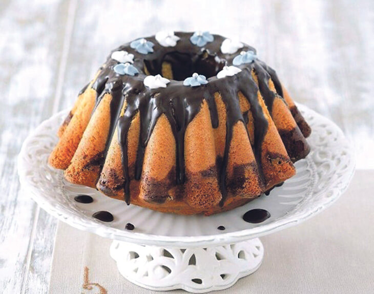 Масло розтерти з цукром, потім поступово додати по одному яйця, по одній ложці олії, увесь час помішуючи. Додати борошно, оцет, порошок до печива. Вилити у форму, попередньо змащену маргарином. Можна спочатку вилити половину тіста, а до другої половини додати какао і вилити його зверху. Пекти приблизно 60 хв. при температурі 180°C. Готову паску прикрасити за смаком.